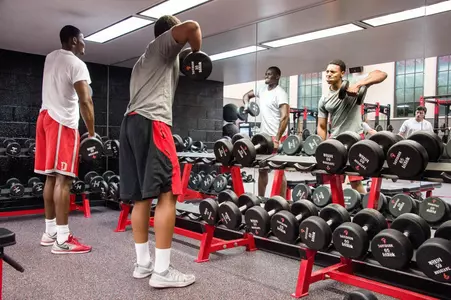 The room is equipped with 8 full racks custom designed by Williams Strength with custom inlaid platforms with Davidson's logo. The room also features two full sets of dumbbells with weights ranging from five pounds to 150 pounds, plyometric boxes of varying size, two full racks of kettle bells, and nearly 200 resistance bands. These features help athletes compete in all 21 Division I sports by improving strength, speed, and flexibility.